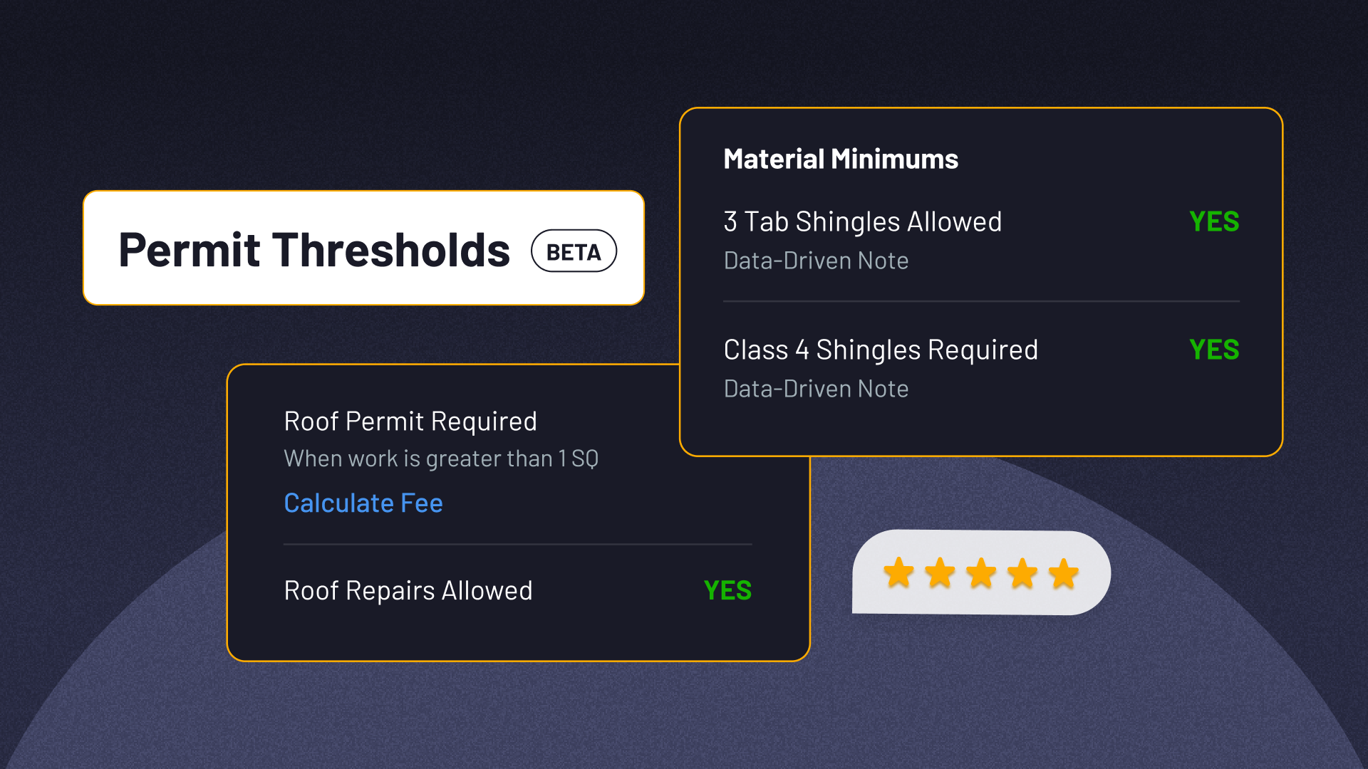 New feature identifies permit requirements, repair thresholds, and shingle mandates for residential addresses nationwide.
